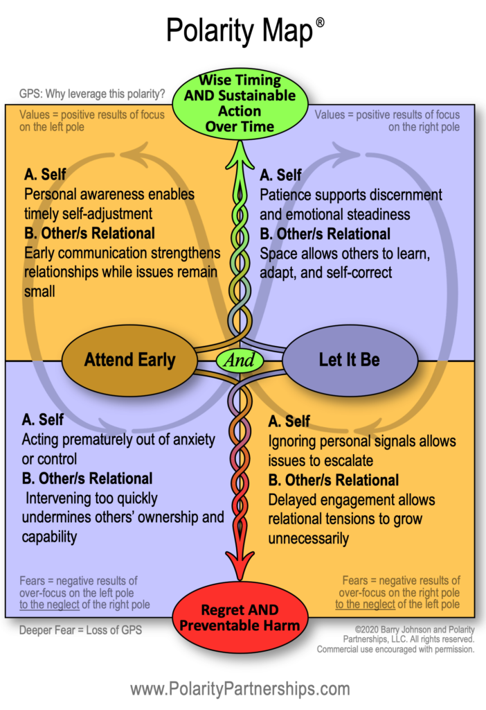 Want to go deeper into Polarity Thinking? See our online self-directed Credentialing and Introduction to Polarity Practice, CLICK HERE.
