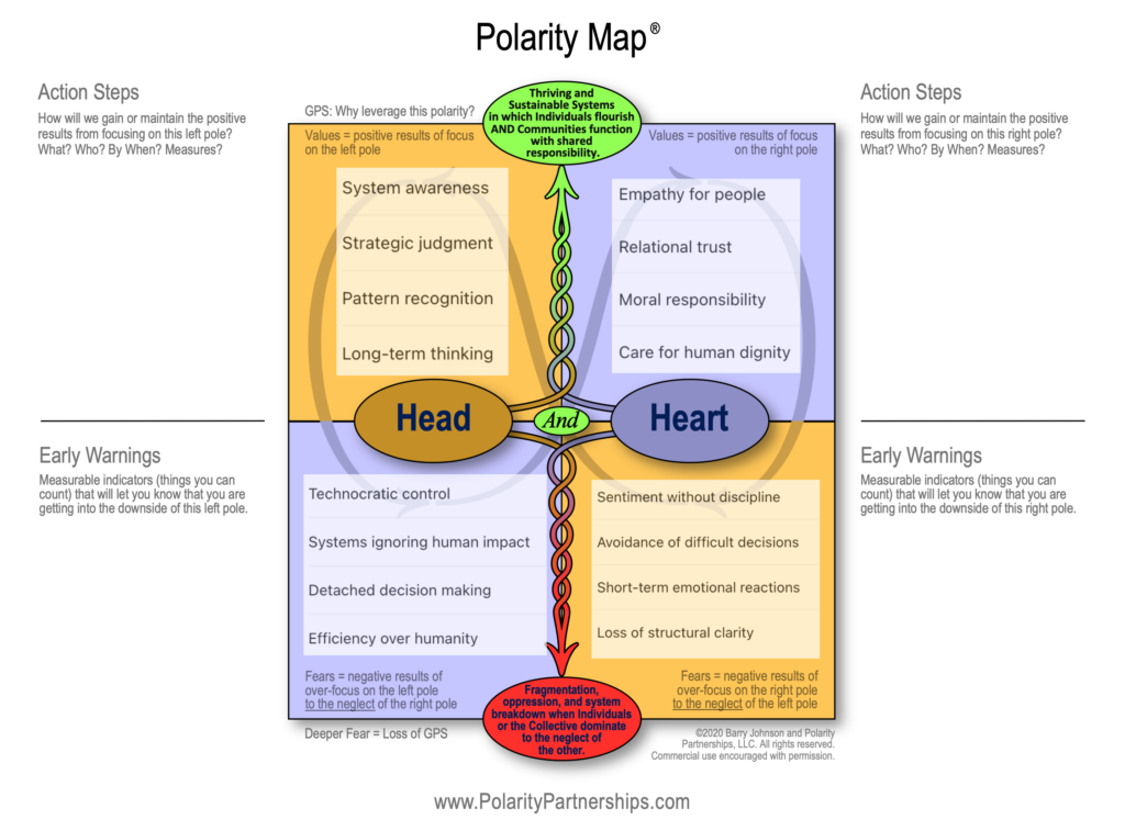 Want to go deeper into Polarity Thinking? See our online self-directed Credentialing and Introduction to Polarity Practice, CLICK HERE.