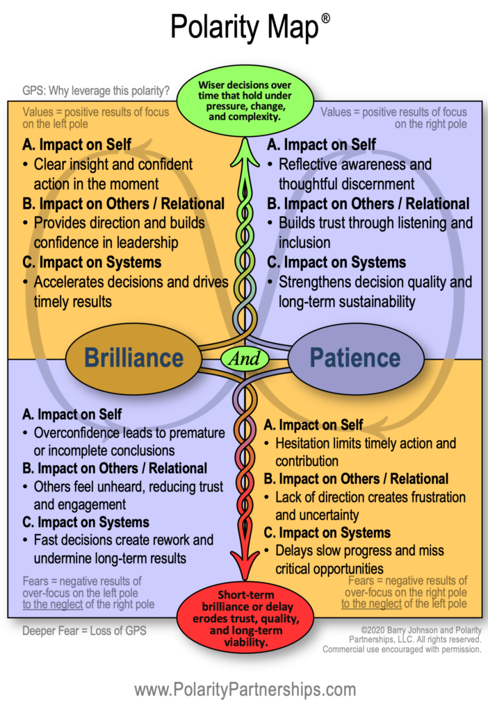 Here’s a Polarity Map of Brilliance And Patience to support seeing the pattern.
