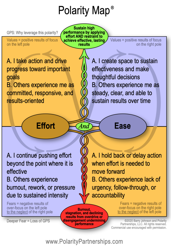 We’ve been seeing this pattern across organizations. Here’s a simple Polarity Map to help see it: