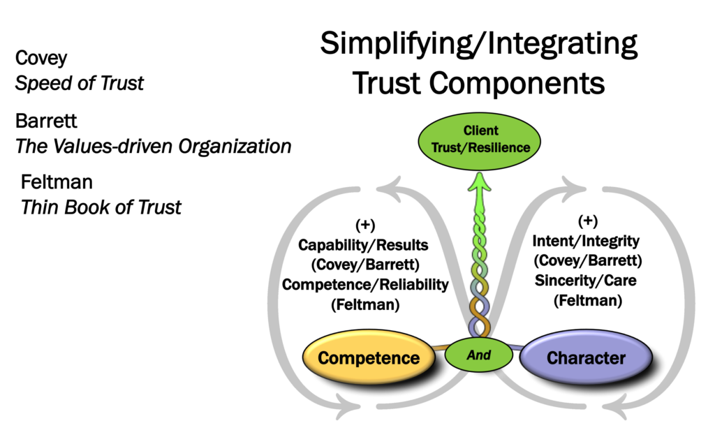 Barrett ties trust to values alignment and consciousness development — focusing on Competence And Character is top in the hierarchy.